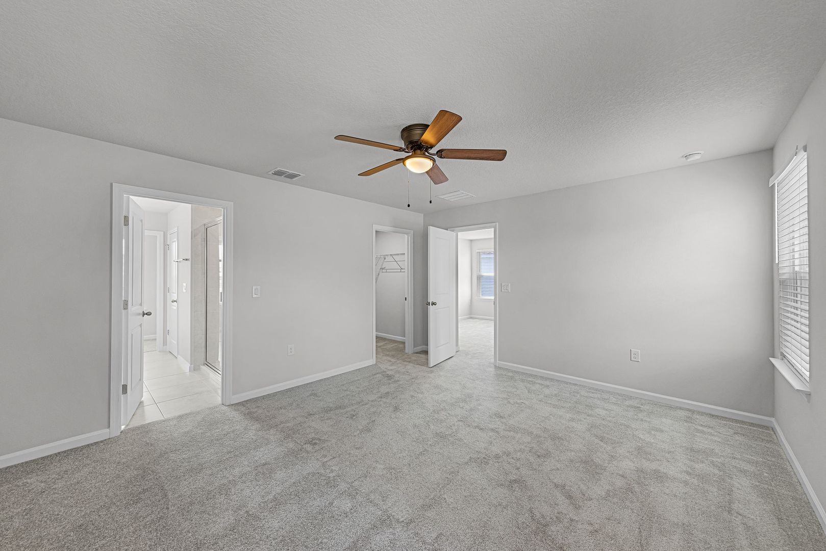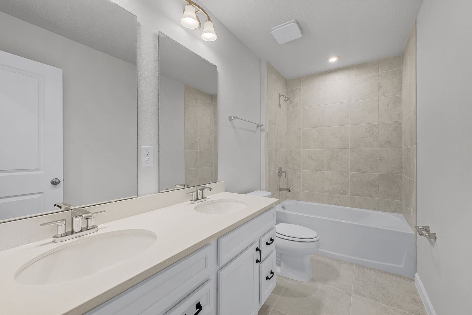 Upstairs, the bedrooms are thoughtfully arranged around a versatile loft space, ideal for a playroom, media area, or home office. The primary suite is a true retreat, with two walk-in closets and an ensuite bath offering a large stand-in shower, dual sink vanities, a private water closet, and a linen closet for extra storage. The secondary bedrooms share a full bath with a double-sink vanity, making busy mornings easier for everyone.