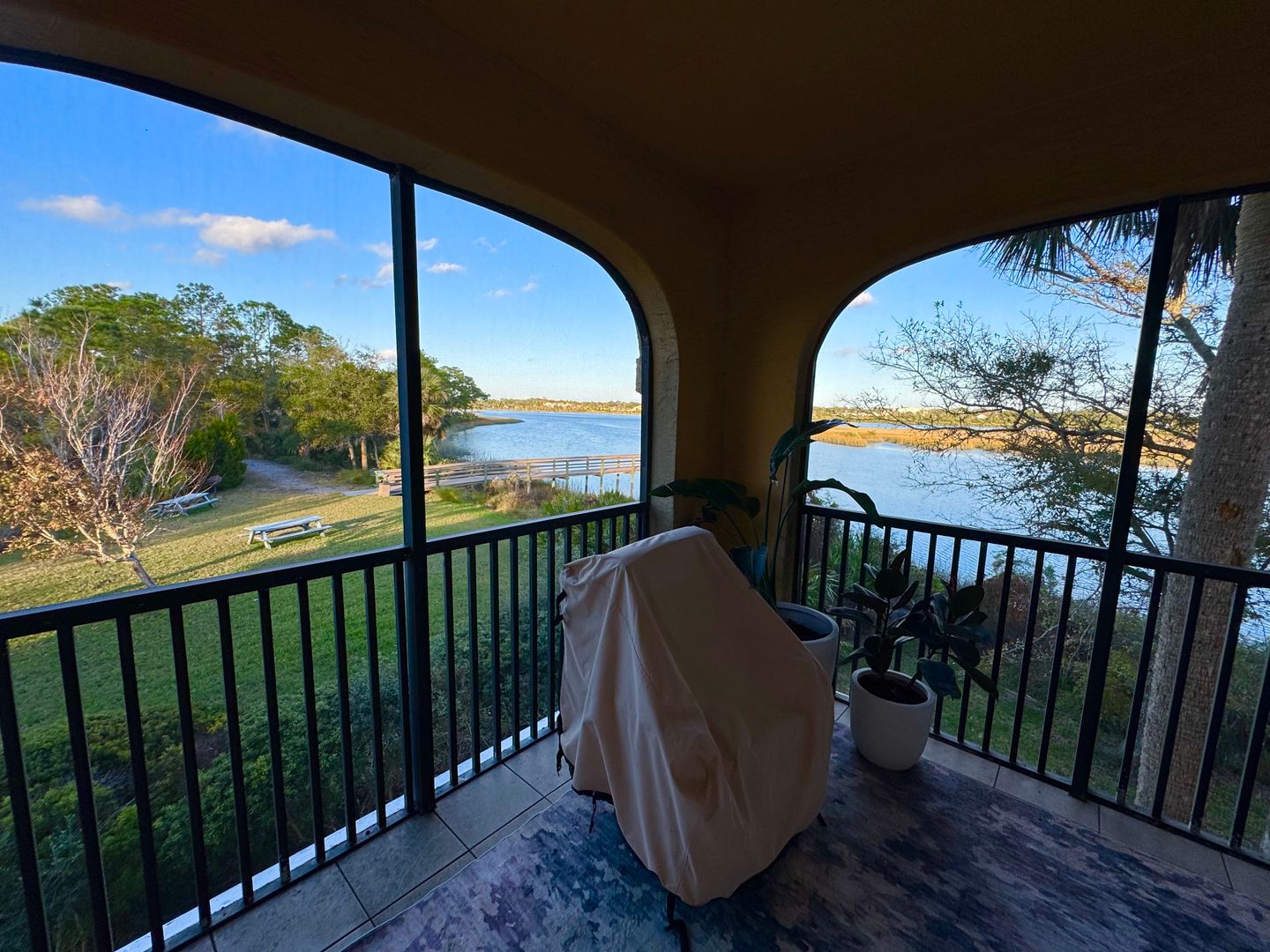 Available February 14th! Situated in the highly desired Vista Cove community, this impeccably maintained 3 bedroom, 2 bath condo is a top/2nd-floor CORNER UNIT with stunning WATER VIEWS from nearly every room! Enjoy your morning coffee or evening wine on the expansive SCREENED-IN PATIO overlooking a lovely natural landscape along the San Sebastian River! This spacious open floor plan features soaring VOLUME CEILINGS and fantastic natural light pouring in from every angle! Split bedroom layout allows for ultimate privacy from your guests and/or home office! The primary suite is large enough for your king-size bed and offers two walk-in closets and an ensuite bath with garden tub with shower and dual vanity! Interior laundry room with storage space for household supplies, complete with newer Maytag WASHER/DRYER included!